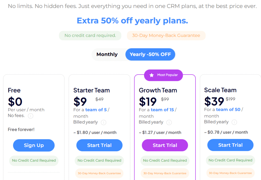 ClearCRM is designed for teams of 1–5 people (up to 50) who want: